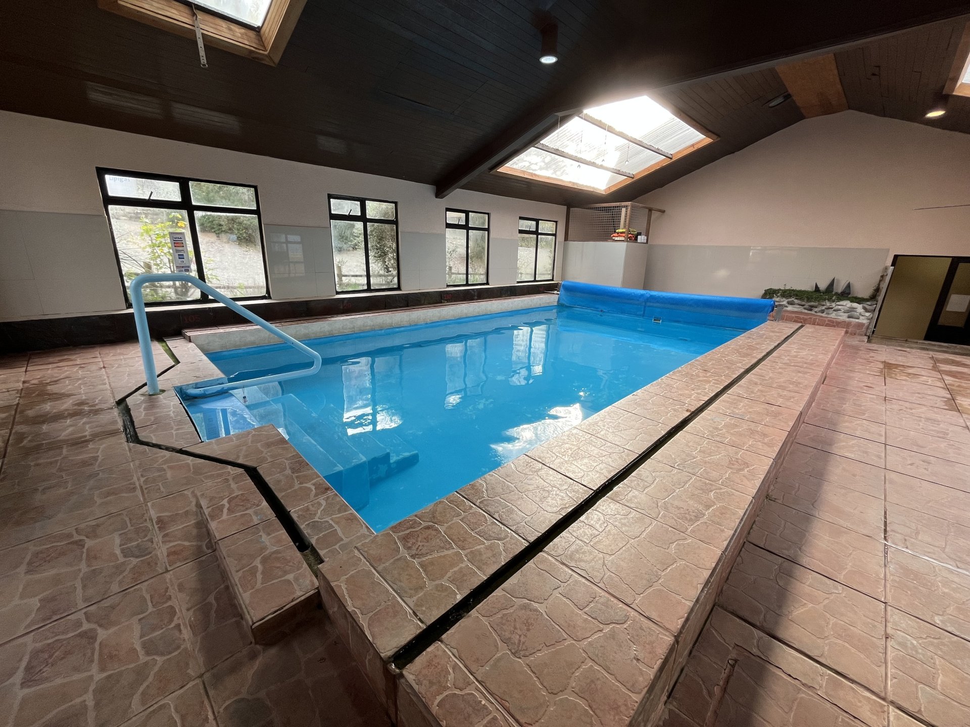 La piscina funciona entre las 14:30 y las 21:30 horas, y requiere reserva con al menos un día de anticipación para mantener la temperatura adecuada.