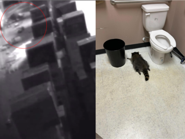 Mapache protagoniza saqueo en licorería y acaba ebrio en el baño