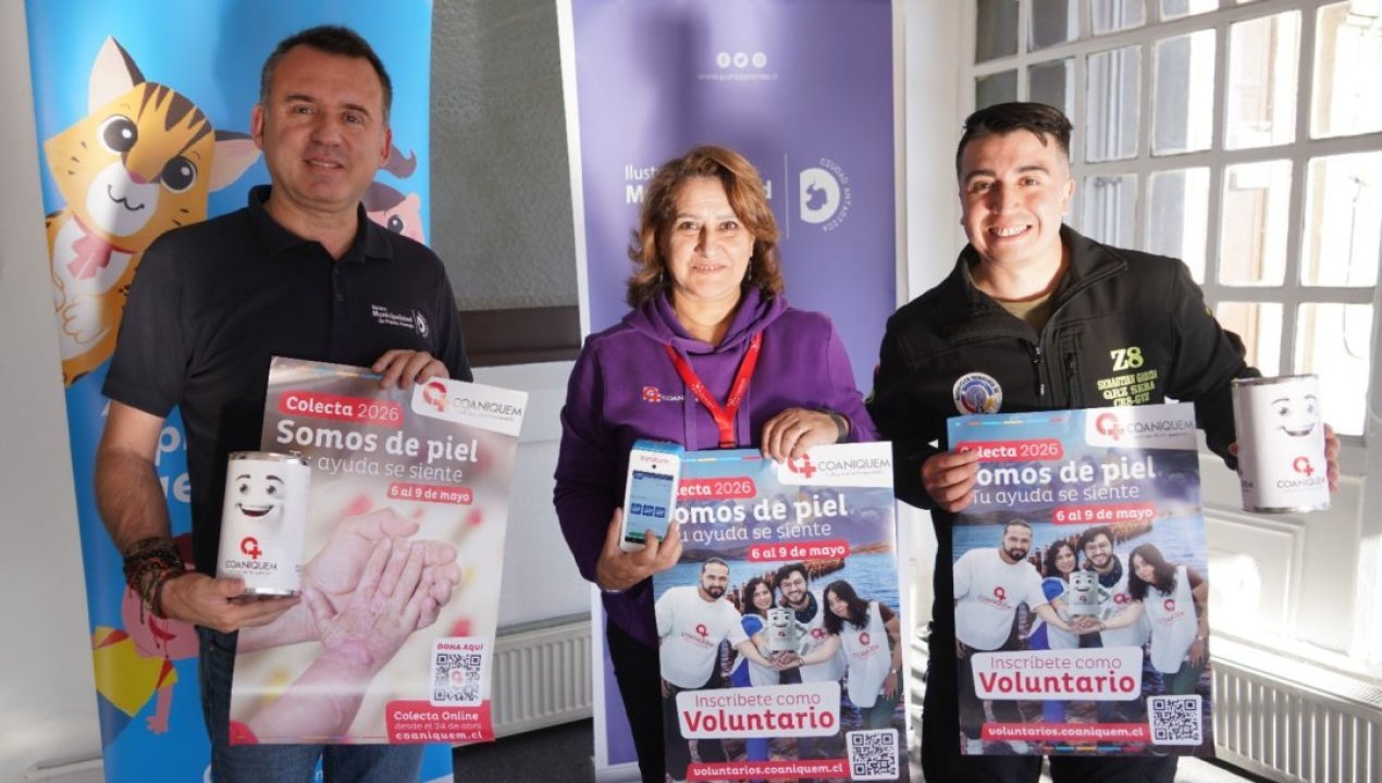 En el Palacio Montes, la Municipalidad de Punta Arenas, junto a la Corporación de Ayuda al Niño Quemado (Coaniquem), realizó una campaña de captación de voluntarios para la Colecta Nacional 2026, con inscripciones abiertas entre el 7 de abril y el 9 de mayo. La iniciativa busca movilizar a la comunidad magallánica para recaudar fondos que permitan continuar brindando tratamientos de rehabilitación a pacientes en toda la región.
